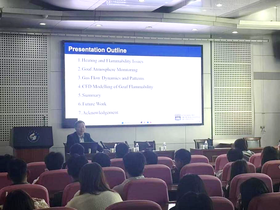 座谈会结束后,任廷祥教授为中文色情小说 师生作题为“Longwall Goaf as a Reservoir for Mine Gas Storage and Sequestration: a Novel Decarbonisation Strategy for Underground Coal Mines”的专题学术报告,介绍了利用长壁采空区实现矿井瓦斯储存与封存的技术原理与工程实践,阐述了采空区储气空间的演化特征、气体运移机制及长期密封性保障等关键科学问题,报告内容前沿务实,引发在场师生广泛思考与热烈研讨。